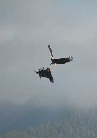 Our day in the Inian islands began with Zodiac cruises in and around the small group of islands.  We had an opportunity to ride the tides, observe, photograph and most importantly, be present when the very rich waters of Cross Sound fed so many.  Bald eagles flew through the sky, chasing each other and other birds, all vying for leftovers from a harvest that a Steller Sea lion had brought up from the depths of Cross Sound.  We watched a sea otter dive and bring to the surface a basket star and enjoy its own private feast on its belly.  We watched smaller birds swooping in on sea lions, each bird hoping for a tiny scrap left over from the flinging of prey by the Sea lion!   The trees along the islands were filled with Bald eagles, all watching with that “eagle eye” for a tasty bite of food left on the surface of the sea.