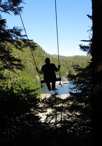 While we have a number of children on board this week, we all managed to find some aspect of our inner child as we romped around George Island. Maybe it was a peanut butter cookie induced stupor, fueled perhaps by the warm afternoon sun, but we ran up trails, scampered across the sandy beach, skipped rocks at the shoreline, splashed about in kayaks and took turns pushing each other on the magnificent swing perched between two Sitka spruce trees at the edge of the forest.