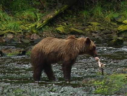 The afternoon found us in the small scenic bay of Port Althorp. A large meadow decorated with bald eagles and a meandering stream filled with pink salmon was the perfect setting for our afternoon hikes. Mike led a fascinating photo walk and even boarded an abandoned barge; a relic from days past. There were many signs of bear activity, which added to the excitement of the afternoon.