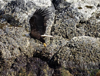 Once National Geographic Sea Lion dropped her anchor in a small, protected cove, we set out in our inflatable boats to explore the islands. The Inians are home to a diverse guild of marine predators and all were on display as we followed the shoreline towards the outer, windswept coast. Sea lions sunned themselves on the jagged rocks, waiting for the tide to turn, as eagles kept watch from their perches high in the spruce trees that blanket the islands’ shores. When the tide finally turned and the gulf waters streamed in, large eddies began to roil the surface. Soon the sky was filled with diving gulls, kittiwakes and cormorants, while guillemots and murrelets chased tiny forage fish caught in the turbulent water. Sea lions, too, gathered and porpoised through the waves, indifferent to the fluid chaos. Occasionally, one would appear at the surface with a salmon in its mouth, and would proceed to thrash it about until it broke into pieces small enough to swallow. Even humpbacks came to feast, though they stayed close to shore feeding on the small fish that sought refuge from the tidal melee.