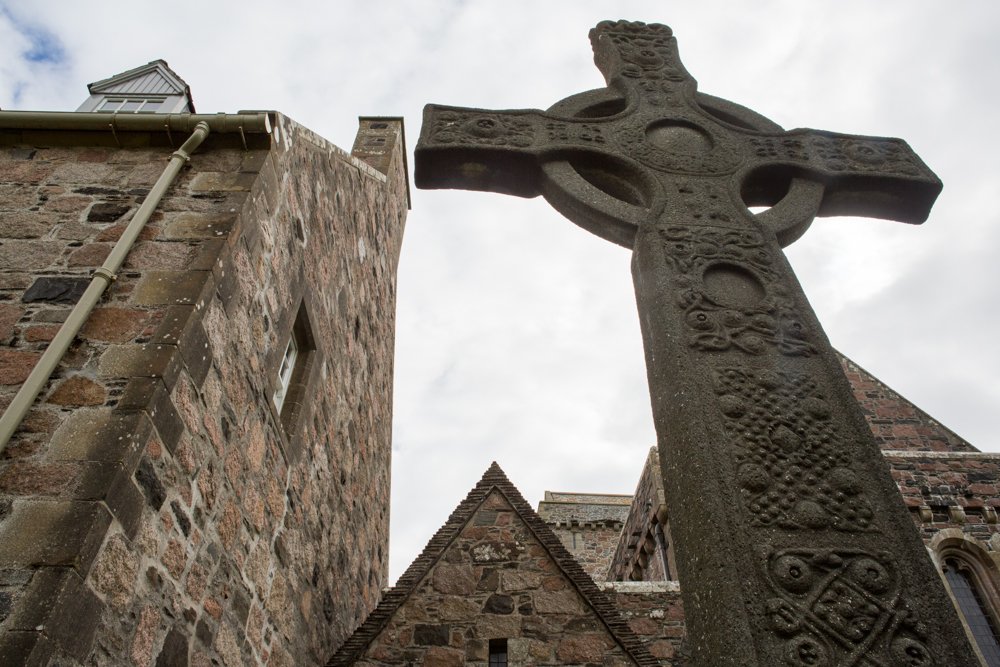 A short crossing by ferry delivered us safely to Iona where we explored the island’s rich collection of ecclesiastical architecture: an Augustinian nunnery, the former parish church, the present parish church designed by Thomas Telford and erected as recently as 1824 and, of course, the restored Benedictine Abbey that is at the heart of today’s Iona Community, founded by George Macleod in the inter-war depression years. Beside the abbey is the ancient graveyard where the kings of Scotland and Norway as well as the Lords of the Isles were laid to rest in the Middle Ages, a mark of the esteem in which Iona was held by virtue of its role in the transmission of the Christian faith to northern Europe following the collapse of the Roman Empire in the fifth century. For it was Iona that Columba arrived on mission from northern Ireland in the year 563 A.D., founding a monastery that has become celebrated for producing the Book of Kells and High Crosses such as that of St Martin, still standing in its original location as the Celtic Cross from which an entire tradition has flowed. We lunched at the aptly named St Columba Hotel before retuning by ferry to Mull to visit Duart Castle, the ancestral home of the Clan Maclean. A tour of the castle was made all the more memorable by an audience with the current Clan Chieftain, Sir Lachlan Maclean who was in residence and clearly delighted to interact with our group.