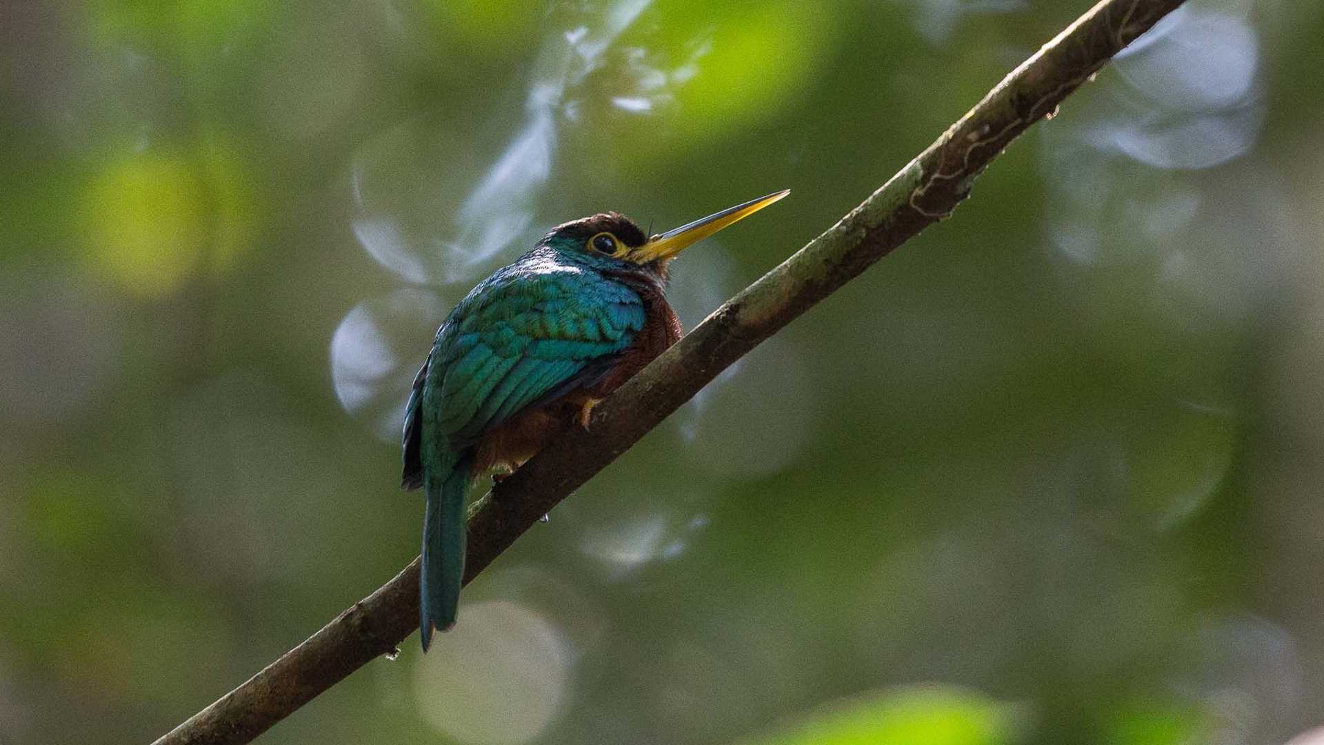 A good way to explore any tropical jungle is to start early when critters are active and the air is fresh and cool. So, very shortly before sunrise, we could already hear the movement around Delfin II in preparation for our first excursion. With watercraft deployed, we were soon face to face with nesting kingfishers and magnificent egrets catching fish from the shores of Iquitos Caño. Later in the morning, we landed for our first walk that included the crossing of seven hanging bridges from which we could get a perspective of the canopy area of this primeval forest. Just before lunch, we had a presentation from Shamana Carola, showing us the different plans and the preparations she takes, caring for people that need her help. In the afternoon, after a photo lecture, we ventured out for a ride in search of the many dolphins that were swimming at the mouth of the Yanayacu River.