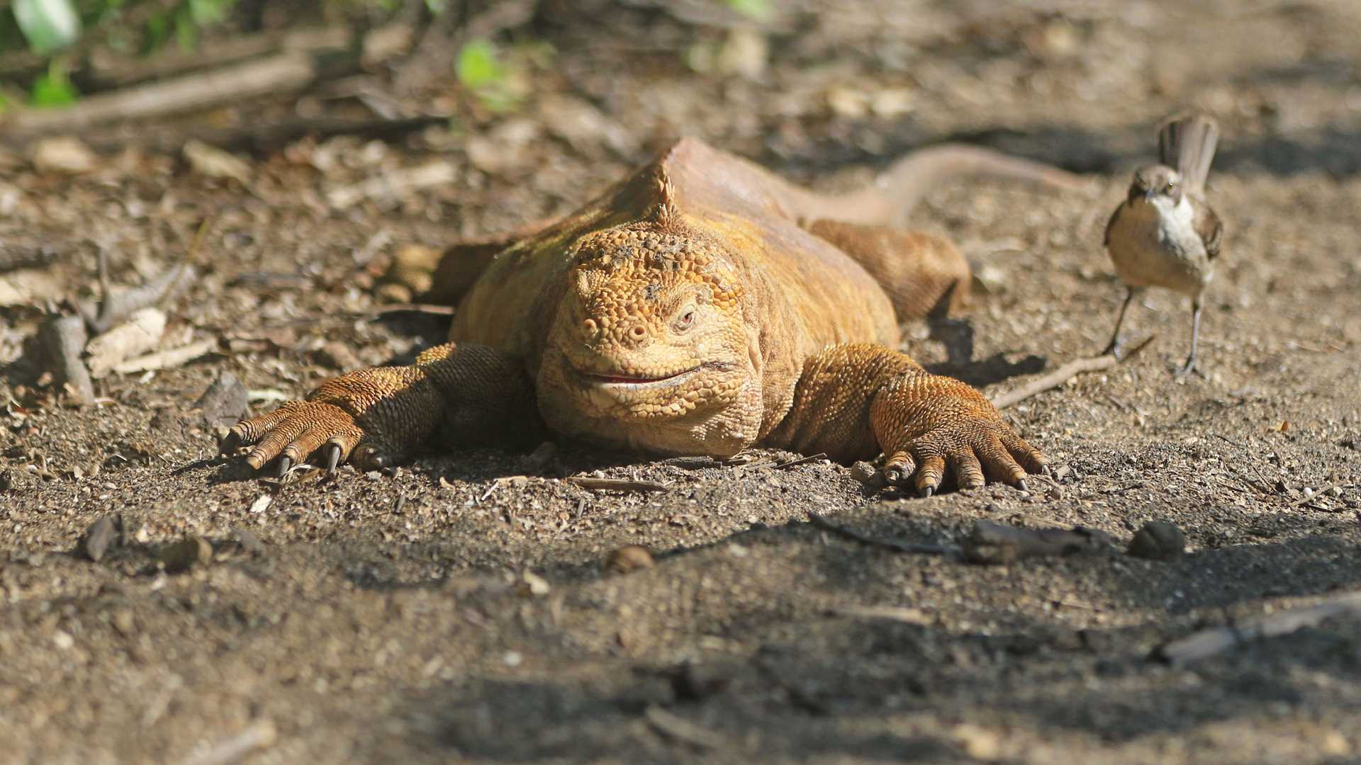 As we continued our walk, we encountered beautiful male land iguanas along the path. They were warming up so they can move around and find food. Based on their color and behaviors, they may be looking for a territory with females.