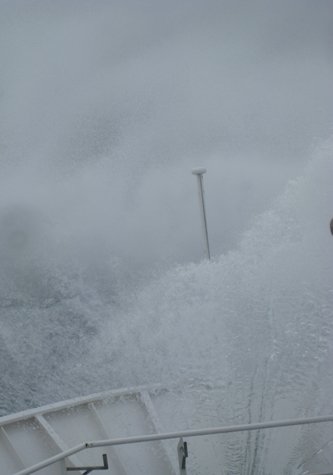 Tonight’s New Year’s dinner was a lavish and delicious buffet. Our guests enjoyed music and dancing until midnight and then we shared a champagne toast and best wishes for 2014. Following the local tradition, and wearing red (for romance) and yellow (for luck), many of us ran around the ship with our luggage, which should bring us a chance to travel extensively during the coming year. Early in the evening the old year’s widows had begged for money, and after midnight we burned the old year (see the photo of the paper puppets and our National Geographic Islander officers before we burned these puppets) so we can start afresh in the morning. Happy New Year everyone!