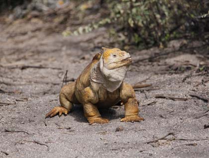 Naturalist Pato gave us a fish talk in the early afternoon to help us understand the ocean currents that influence these islands and learn to identify some of the fish we are seeing each day as we snorkel. Then as the afternoon cooled off we took the Zodiacs into coast for a dry landing on the barren lava shores of Fernandina. From afar this majestic shield volcano looks black and empty but once we began our walk on the pahoehoe lava we were amazed at the amount of life to be seen and photographed here. We found hoards of marine iguanas - many were resting while dozens of females were energetically digging nest holes. The ubiquitous and ever charming sea lions were present, as were flightless cormorants and a beautiful chocolate brown adult Galapagos hawk. Rain threatened all afternoon, and indeed it poured to the south of us, but we had only a light and cooling sprinkle; even so just this quick rain made the lava rocks quite slippery. Back on board we snacked on guacamole and sipped cocktails on the sky deck as the blazing orange ball of fiery sun dropped behind the volcano.