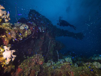 After breakfast, we crossed the Equator line and were baptized with the permission of King Neptune; all of us became shellbacks. We soon arrived to Punta Vicente Roca (the northern part of Isabela) and had a Zodiac ride, where we were able to spot a group of Galapagos penguins fishing and surfacing around our Zodiac, we also saw flightless cormorants nesting along the coast and pacific sea turtles floating on the surface of the ocean just resting and basking!