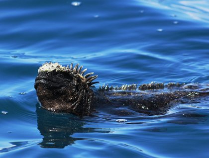 After lunch we repositioned the National Geographic Islander and anchored off the coast of the youngest island of the Galapagos, arriving to Punta Suarez (the only visitor site on this island). As soon as we had a dry landing, we found the land of dragons in front of our eyes. Hundreds of large marine iguanas welcomed us to enter the most preserved island in the enchanted archipelago. A Galapagos hawk was resting on the red mangrove trees and lava lizards were sitting on some iguanas’ heads. These black marine iguanas were covering large areas of our trail as some sneezed salt out of their nostrils! This is the only marine iguana in the world and we sure saw hundreds of them today!