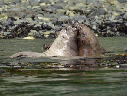 We returned to the ship and wiggled into our wet suits, then boarded the Zodiacs and went snorkeling in a calm bay where we found sea turtles swimming and sleeping. There were many fish, of a dozen different varieties, and even some predatory sierra mackerel that darted in to chase small bait fish. Sea lions swam among us and we thoroughly enjoyed the outing!