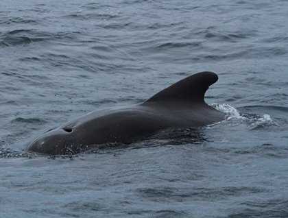 After our lunch we had planned on a well- deserved siesta, but our second mate, Israel, spotted a pod of pilot whales and I called everyone on deck! We spent 40 minutes alongside them and got amazing views (and hopefully great photos) of the huge male, a dozen females and juveniles, and a really small baby. Then Naturalist Gaby gave us an interesting talk on the human history of these islands. We were soon back in the Zodiacs and headed for the pristine lava shores of Fernandina. This afternoon we watched a hawk feeding on a dead marine iguana, we found a sea turtle sunning on the black sand and we stepped over and around hundreds of marine iguanas. There were baby cormorants in the nests and striated herons fishing. The sun slipped behind the impressive shield volcano of Fernandina, painting the clouds a faint peach color as we motored contentedly back to the ship. We have had an incredibly full and busy day and honestly, I don’t think we can find much that will outshine what we have seen today in las Islas Encantadas!