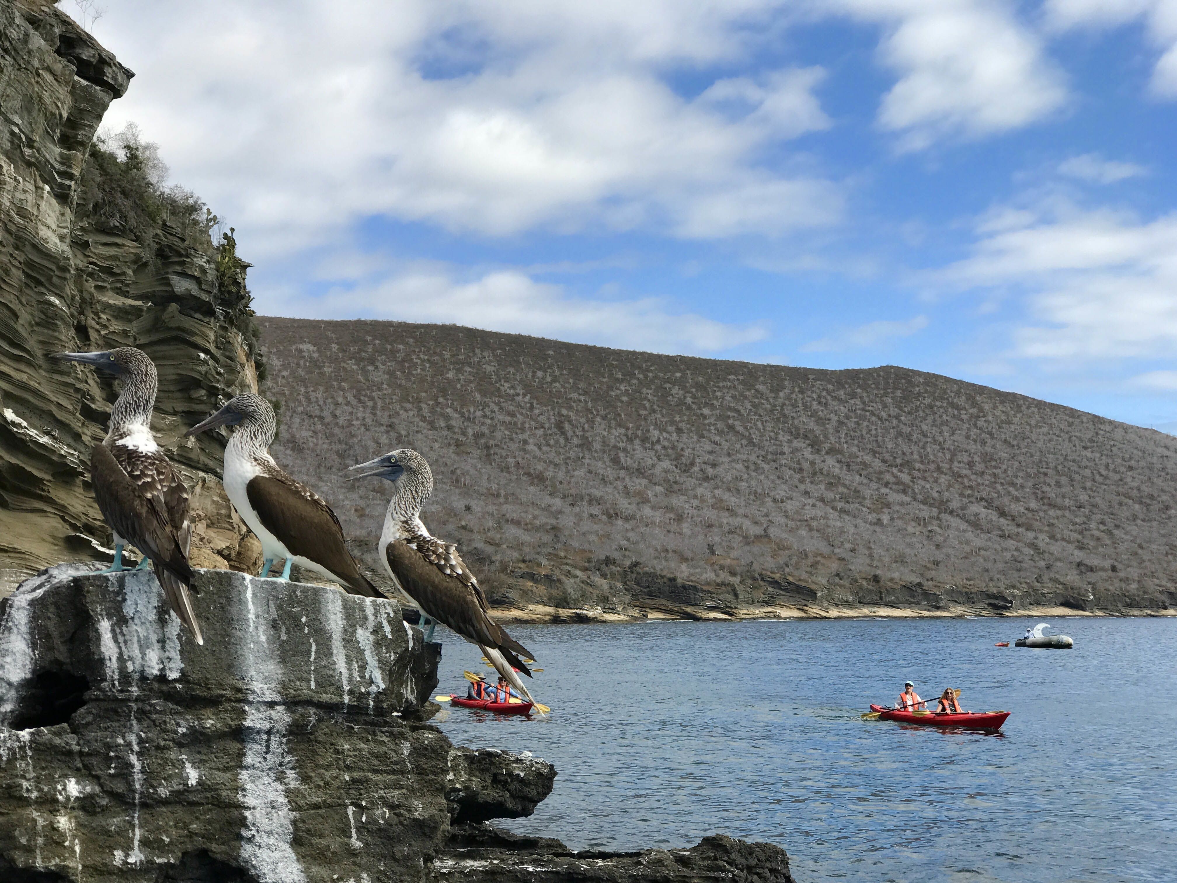 It’s our first full day of expedition on National Geographic Islander . We started our day with a morning hike on North Seymour, which is one of the best islands to observe nesting colonies of frigatebirds, blue-footed boobies, swallow-tailed gulls, and many more species of marine birds. Later in the morning, National Geographic Islander navigated to the beautiful Rabida Island, where we enjoyed an amazing afternoon. Guests swam and snorkeled with sea lions and many different species of reef fish off the red sand beach. We walked to a pond located behind the beach and observed flamingos nesting after more than 20 years on this island.
