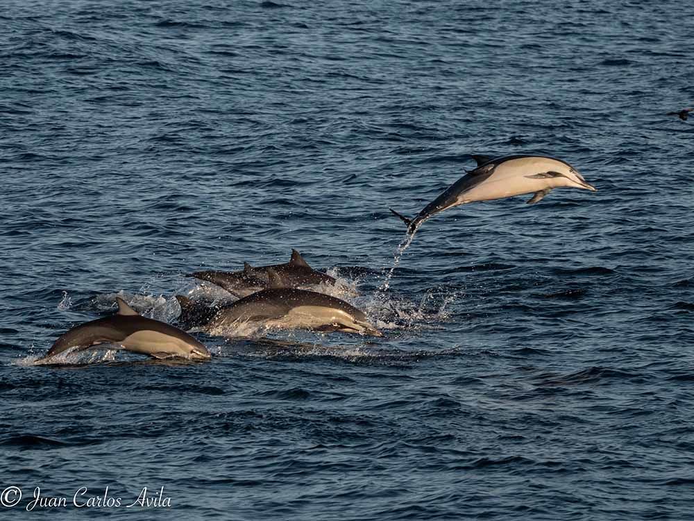 In the early morning we navigated to the north side of Isabela, the largest island of the Galapagos. With a nice warm breeze, typical of the season, and sunshine shedding light on the flanks of the volcanoes of Isabela island, we gathered on the observation deck with nice fresh brewed coffee in one hand and binoculars in the other. Suddenly we spotted a lot of splashing about a mile away from our course. Through the binoculars, we realized we had an enormous pod of common and bottlenose dolphins. Our captain redirected National Geographic Venture toward the pod, and soon we could see close to a thousand dolphins surrounding the ship! There were also lots of seabirds foraging, and minutes later, we had another momentous encounter - It was a pod of sperm whales. I have not seen them in over 10 years; this morning they made my day, and definitely the rest of the year.