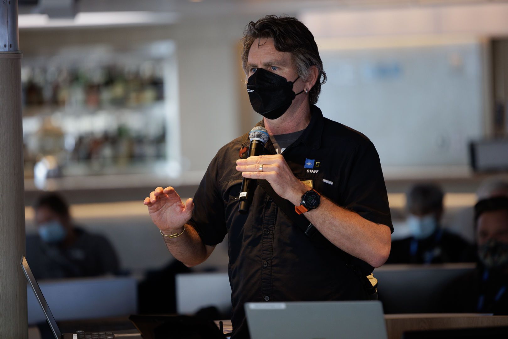 In the early morning, National Geographic Islander II visited Bartolome Island, one of the most iconic places in the Galapagos Islands. We made it all the way to the top to get panoramic pictures of the pinnacle view. Then we headed back to the ship for breakfast and to get ready for the beach, where we planned to practice with our snorkeling gear for the first time. Afterwards, some of our guests enjoyed deep-water snorkeling, and others took tours in the glass-bottom boat. During the afternoon, we visited Cerro Dragon on Santa Cruz Island to look for land iguanas, and we found them posing for us on the trail. It was an amazing day aboard National Geographic Islander II !