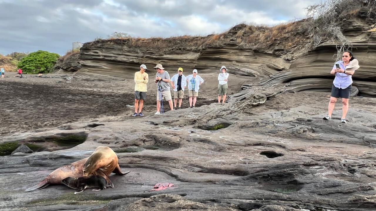 In the early morning, National Geographic Islander II visited Bartolome Island, one of the most iconic places in the Galapagos Islands. We made it all the way to the top to get panoramic pictures of the pinnacle view. Then we headed back to the ship for breakfast and to get ready for the beach, where we planned to practice with our snorkeling gear for the first time. Afterwards, some of our guests enjoyed deep-water snorkeling, and others took tours in the glass-bottom boat. During the afternoon, we visited Cerro Dragon on Santa Cruz Island to look for land iguanas, and we found them posing for us on the trail. It was an amazing day aboard National Geographic Islander II !