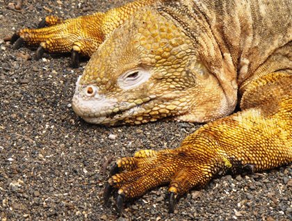 Isabela is the largest of the Galapagos Islands. Today, we have the opportunity to explore its beautiful western coast. In the morning we visited Urbina Bay, which has been the scene of some recent volcanic activity. In 1954, about 1.5km2 of coastline was suddenly uplifted, leaving many marine creatures stranded and unable to return to sea. The uplift also revealed some massive coral heads, which by now, after so many decades, have already bleached under the equatorial sun. The vegetation has already covered much of this evidence, and new creatures have established themselves here. Urbina is now the home to a small population of land iguanas. We found several of them along the trail. It was fun to watch one of them making huge efforts to reach the fruit of the poison apple tree, a favorite food for them. Some giant tortoises have also moved into the vicinity, and today we were fortunate enough to see a few of them. They seemed a little lethargic, but it was still early in the morning. There were also many little land birds, which we recognized as Darwin finches. They were collecting little seeds and bugs while others were drinking the tiny droplets of water that the early morning mist had deposited on the leaves of the bushes and trees.