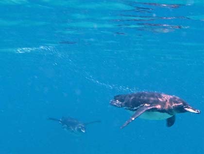 In the afternoon we had several ways to enjoy the magical wildlife of the western realm. A close encounter with penguins, cormorants and other shorebirds was the goal for explorers who went kayaking. Others wanted to enjoy the underwater realm and went snorkeling along the shoreline of Tagus Cove where they found harlequin wrasses, bravo clinid, balloonfish, Peruvian grunts, dusky chubs among other unique species to the place. Sea turtles and Galápagos penguins were also sighted in the snorkeling area.