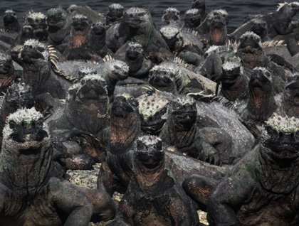 Starting our exploration along the coast, we spotted a huge male marine iguana, at least four feet long! Further ahead several female marine iguanas warmed up on top of big black lava rocks. We also saw yellow warblers, Darwin finches, whimbrels, brown pelicans, striated herons and many Sally Lightfoot crabs. Heading inland, we saw evidence of an incredible geological event that occurred in 1954, when seismic activity uplifted more than two square kilometers of sea floor, changing the topography and the landscape of Urbina Bay forever. This evidence included petrified sea worms, barnacles and huge pieces of white coral heads spread along the trail.