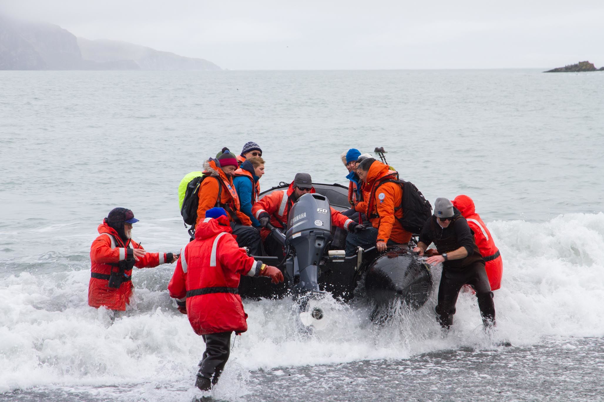 On National Geographic Endeavour II today, we explored Bartolome, home of a small colony of Galapagos penguins. Bartolome is one of the youngest islands, and it is located next to Santiago Island in the central part of the archipelago. After an amazing sunrise, we went ashore for a walk, and we were transported back to a time when the land was newly formed. We began our day by hiking to the top of a tuff cone known as the islet of Bartolome, named after the First Officer of The Beagle . Walking on this young island allowed us to understand the formation and volcanism of the Galapagos Islands. The rocks are a great way to understand the area and its geology. We spotted a few lava lizards and painted locusts, some of the very few animals on this island. As we reached the top, we had a great view. Our guests enjoyed the magnificence of Pinnacle Rock. After we visited one of the most iconic geological formations of the Galapagos, our breakfast was enhanced by dramatic views of the impressive volcanic landscape. We visited the beach near Pinnacle Rock, where we enjoyed how the sun made the sand sparkle due to a concentration of silica. Later, we went snorkeling along the channel between Santiago and Bartolome Islands. Many of our guests spotted whitetip reef sharks and very colorful parrotfish. The landscape was beautiful with lots of sea stars. We enjoyed the chance to be surrounded by Galapagos penguins and feel accepted as part of this environment. After a delicious Mexican lunch, we had lectures on the photography of reptiles and Darwin. Afterwards, we went to Chinese Hat Islet to snorkel from the Zodiacs. The area is home to a small colony of Galapagos penguins. In a sandy-bottomed, sheltered channel, our guests enjoyed swimming with whitetip reef sharks, rays, and many fish. It was a nice and sunny afternoon. After snorkeling, we had the chance to explore the unique, small volcano that formed an island in front of Santiago on a sunset Zodiac ride. After a spectacular day full of activities in the field, we returned on board. Every day in the Galapagos is an opportunity to reconnect with the beauty of nature through unbelievable encounters!