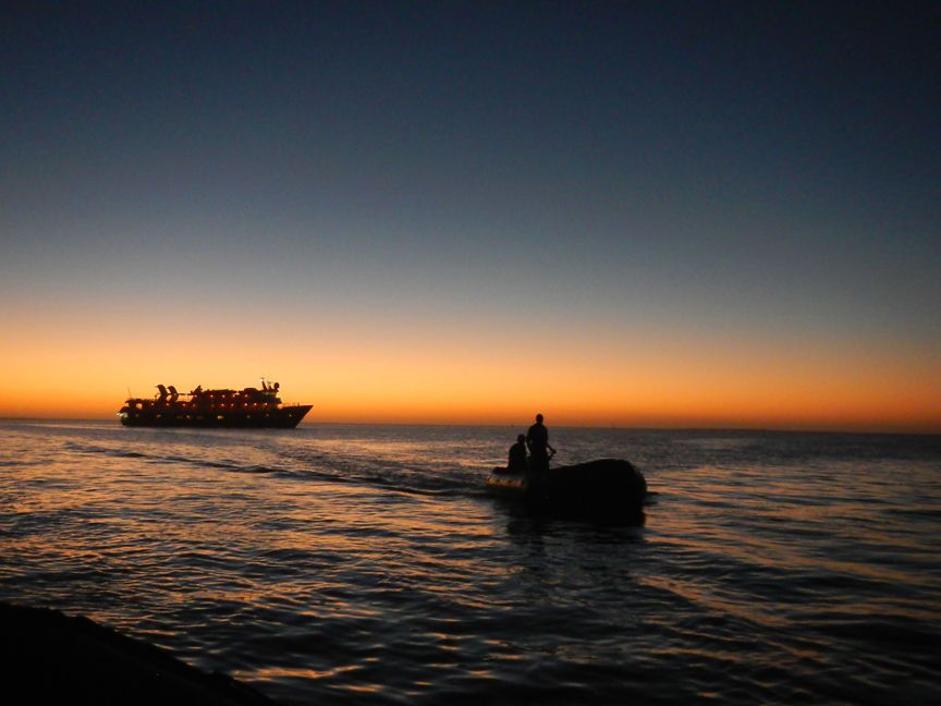 On National Geographic Endeavour II today, we explored Bartolome, home of a small colony of Galapagos penguins. Bartolome is one of the youngest islands, and it is located next to Santiago Island in the central part of the archipelago. After an amazing sunrise, we went ashore for a walk, and we were transported back to a time when the land was newly formed. We began our day by hiking to the top of a tuff cone known as the islet of Bartolome, named after the First Officer of The Beagle . Walking on this young island allowed us to understand the formation and volcanism of the Galapagos Islands. The rocks are a great way to understand the area and its geology. We spotted a few lava lizards and painted locusts, some of the very few animals on this island. As we reached the top, we had a great view. Our guests enjoyed the magnificence of Pinnacle Rock. After we visited one of the most iconic geological formations of the Galapagos, our breakfast was enhanced by dramatic views of the impressive volcanic landscape. We visited the beach near Pinnacle Rock, where we enjoyed how the sun made the sand sparkle due to a concentration of silica. Later, we went snorkeling along the channel between Santiago and Bartolome Islands. Many of our guests spotted whitetip reef sharks and very colorful parrotfish. The landscape was beautiful with lots of sea stars. We enjoyed the chance to be surrounded by Galapagos penguins and feel accepted as part of this environment. After a delicious Mexican lunch, we had lectures on the photography of reptiles and Darwin. Afterwards, we went to Chinese Hat Islet to snorkel from the Zodiacs. The area is home to a small colony of Galapagos penguins. In a sandy-bottomed, sheltered channel, our guests enjoyed swimming with whitetip reef sharks, rays, and many fish. It was a nice and sunny afternoon. After snorkeling, we had the chance to explore the unique, small volcano that formed an island in front of Santiago on a sunset Zodiac ride. After a spectacular day full of activities in the field, we returned on board. Every day in the Galapagos is an opportunity to reconnect with the beauty of nature through unbelievable encounters!