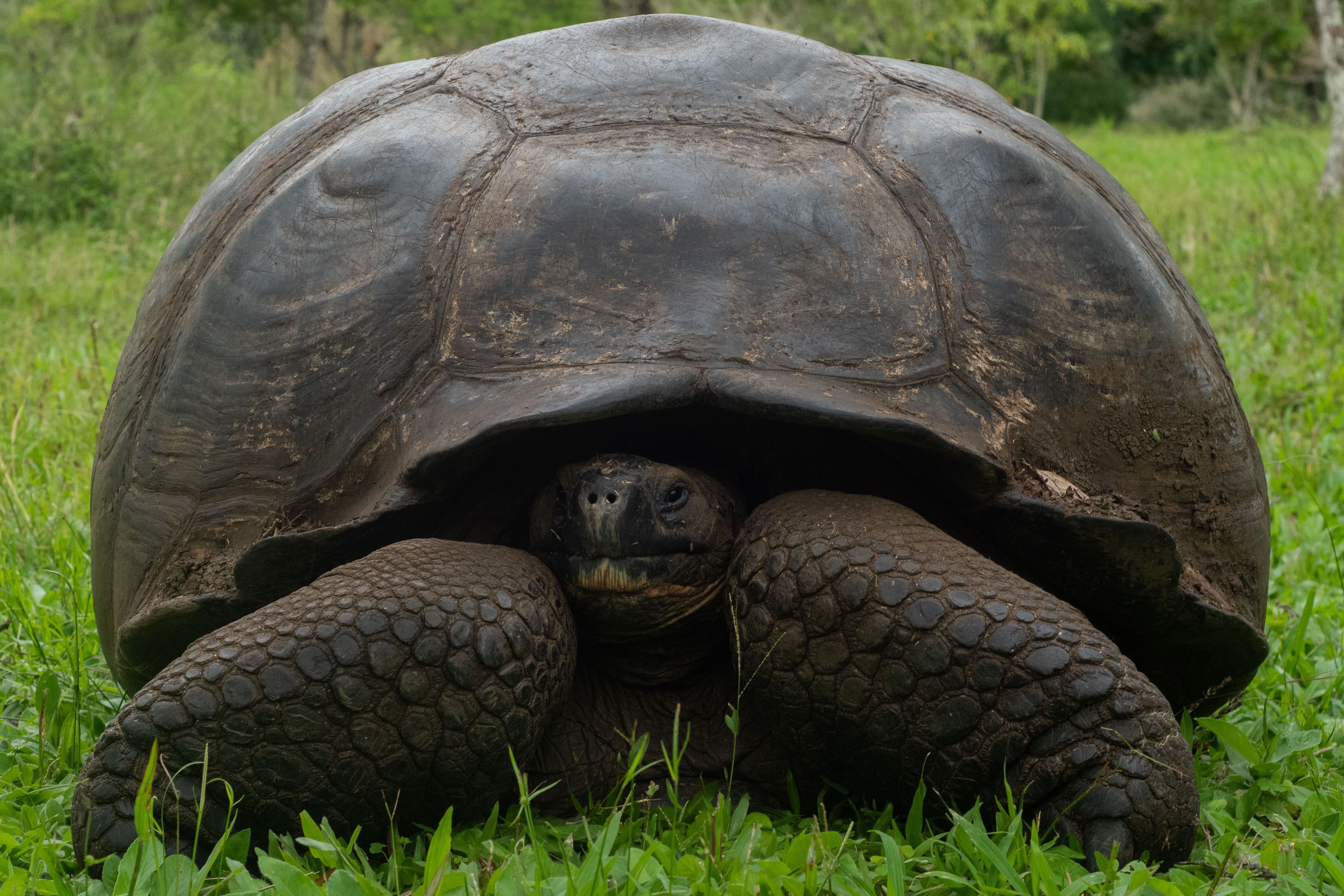 Just as we were getting ready to board Zodiacs after breakfast to head for the beach at Urbina Bay, Juan Carlos Avila, our Expedition Leader, spotted a pod of dolphins swimming near National Geographic Islander. We boarded our Zodiacs, and we approached them. The show they gave us was unforgettable. Many jumped very close to us, while others swam below us, all of them officially welcoming us to this beautiful part of the Galapagos archipelago. We walked inland on the beach, and we saw our first land iguanas basking along the trail. Many of them looked at us indifferently, while others simply walked through the bushes, looking for food. Near the end of the trail, we came across some tortoises that probably came down from the top of the Alcedo Volcano to nest.