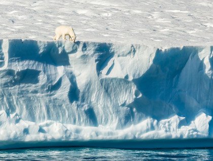 Sunrise came early this morning (02:43) to all on board National Geographic Explorer, breaking in hues of red and orange. The ship’s bow sliced cleanly through glass-flat water as we approached Isabella Bay on Baffin Island. Breakfast being served was the only thing to disturb the relative quiet and calm of the growing day, when the call came from the bridge that polar bears had been spotted on a huge iceberg at the entrance to the bay. Creamy yellow bodies emerged from the blue-white backdrop as first one bear, then two, then three, and finally six ice bears were sighted all on the same floating temporary home.