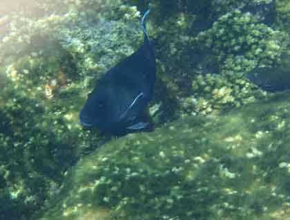 This place offered a great and unique opportunity for snorkeling and underwater nature photography. Right after breakfast all guests began the outing of the day. As soon as we reached the beach, the young explorers rapidly prepared their snorkeling gear. They were escorted by other members of their families entering the crystal waters that surround Granito de Oro. There they found bicolored parrotfish, king angelfish, sergeant majors, and damselfish, among others.