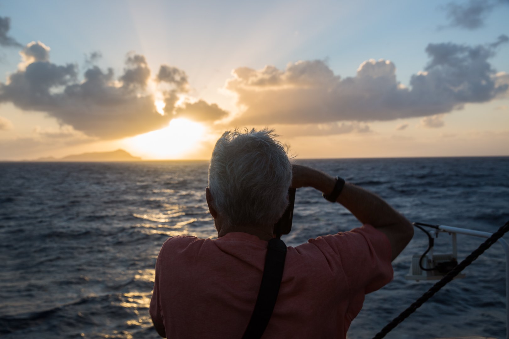 Our last full day together was a perfect finale to our busy week aboard National Geographic Sea Bird. Scattered clouds patterned the sky as we set off for a morning of whale watching. During a lunch on deck, the ship sailed back through the narrow channel lined with dunes and mangroves to the more open Magdalena Bay. The anchor dropped and, in a short time, shuttles whisked us off to hike on the sandy shore before returning for an evening of merriment back on the ship.