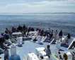 Most of us reached a spit crowded with hundreds of resting seabirds. Elegant terns stood in a tight mass flanked by groups of California gulls and brown pelicans. A peregrine falcon and several other disturbances abruptly flushed the birds into the air. The cacophony of their piercing screams was almost overwhelming as they lifted off and then quickly resettled once again. What a spectacular opportunity for photographers and non-photographers alike!