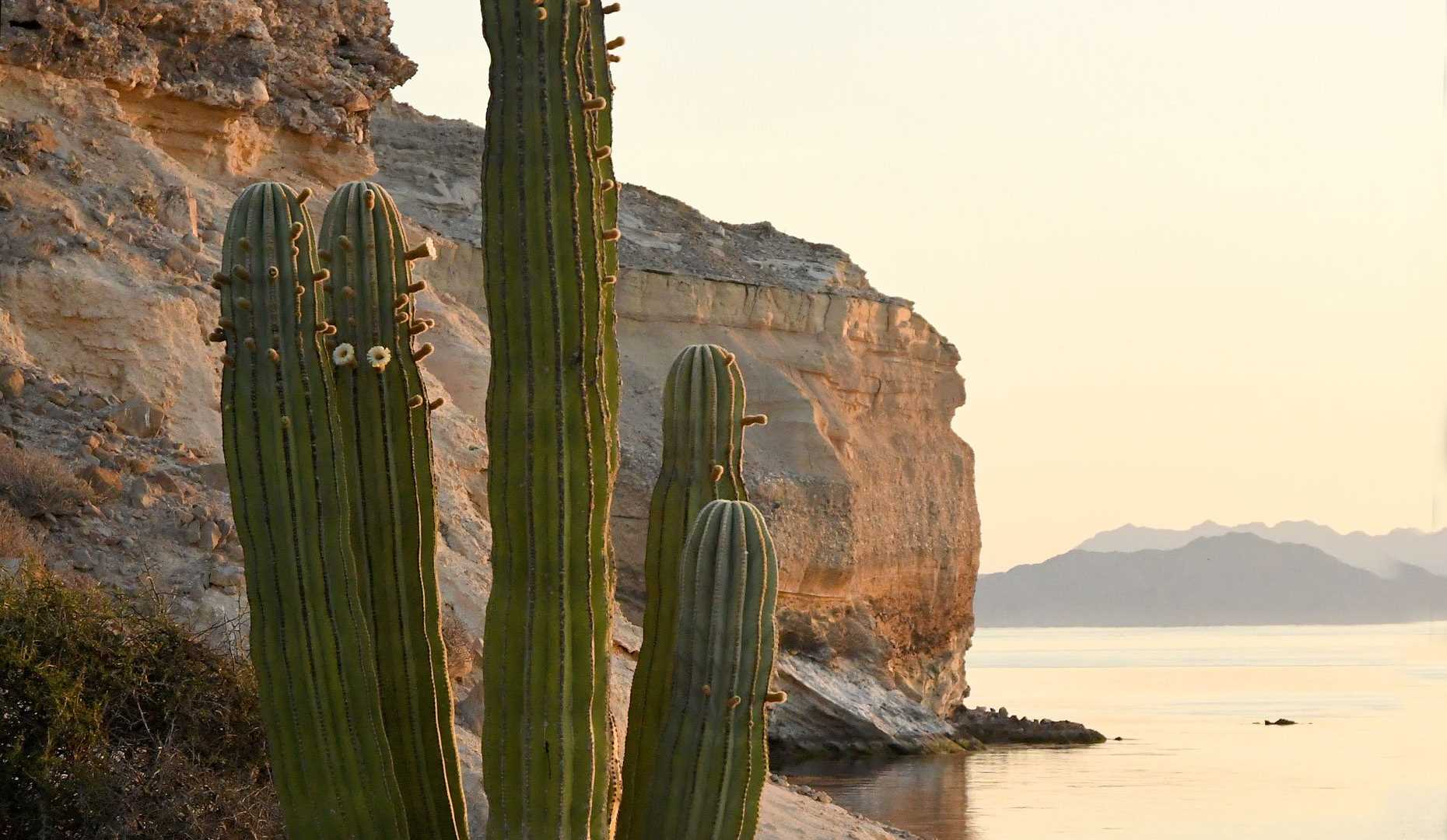In the dark of the morning truly motivated photographers boarded our inflatables for a short ride to Isla San Estéban. We were soon climbing to a flat expanse full of giant cardons and world class views to peer into the ever brightening horizon for a sunrise photo shoot. All this effort is about the light, the pinks and golden colors that transform the normal into the short-lived visual extravaganza of beautiful images possible at dawn.