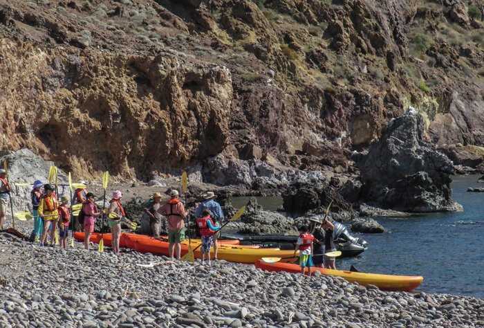 Today we investigated an arroyo on Isla San Marcos that I personally have not visited since 2008. Back then we labeled it “the secret garden.” It was still very clear why as we wound our way around orange-flowered globemallow, white-petaled passion flowers, blue saucers of morning glory, and delicate white flowers of a desert wildflower sometimes called orchid flower. We also had our first opportunity to kayak and the rocky shores of Isla San Marcos provided the perfect area to paddle around. The town of Santa Rosalia in the afternoon offered delights to a different sense as the sweet, yeasty aroma of freshly baked goods drew us to the Boleo Bakery.