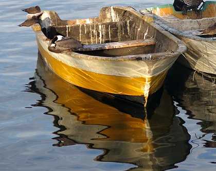 The marine world was also alive with life. Jellyfish drifted by like pale blobs of blubber. Iridescent copepods called Copilia glinted beneath our boats like blue sequins catching the light. These are not bioluminescent as are many saltwater inhabitants in darkness; instead the males have guanine crystals that refract and reflect light to produce their stunning sapphire color in a way that one can see in broad daylight.