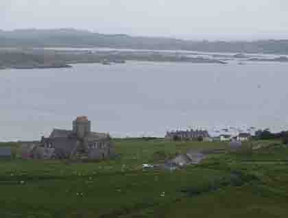 Early morning, before most of our group was awake, Lord of the Glens sailed out of Tobermory harbor bound for Craignure, a village further south on the Isle of Mull. Craignure’s pier is a landing point for the large CalMac ferries that connect the Hebridean islands to mainland Scotland, and we saw many of the big ships pass by. At Craignure, we disembarked to board a bus for the Isle of Iona, a small island off the tip of Mull. It took a 45-minute bus ride to Fionnophort village, then a short ferry journey across a channel to reach Iona. Our bus driver Sheila skillfully maneuvered the bus along the miles of one-lane roads, where frequent passing zones (small pullouts) allow cars and other big vehicles to pass each other. Sheila provided an engaging commentary, filled with the history and local stories of Mull, then dropped off us to catch our ferry to Iona.