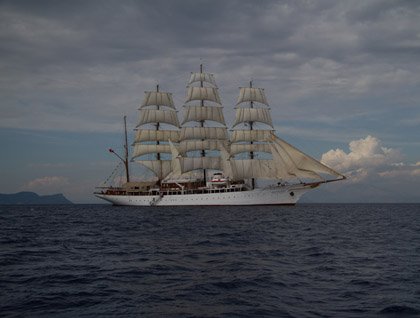 The Sea Cloud arrived in Ithaca, the second smallest island in the Ionian Sea and home to Odysseus, in the early morning, on a cloudy but warm day. We tendered ashore where the statue of Odysseus was waiting to welcome us! Ithaca is small and rugged, but still one of the best-kept secrets of our islands, and a place with a long maritime tradition. Vathy, the main port and capital, is a nice small quiet town hiding in one of the most concealed and protected natural bays of Greece, in the old days hiding from the pirates but nowadays only from the strong winds. It’s a tiny port, but many sailboats prefer it and come to enjoy the sweetness of the land and the legends associated to the cunning king Odysseus, the “man of many devices.”