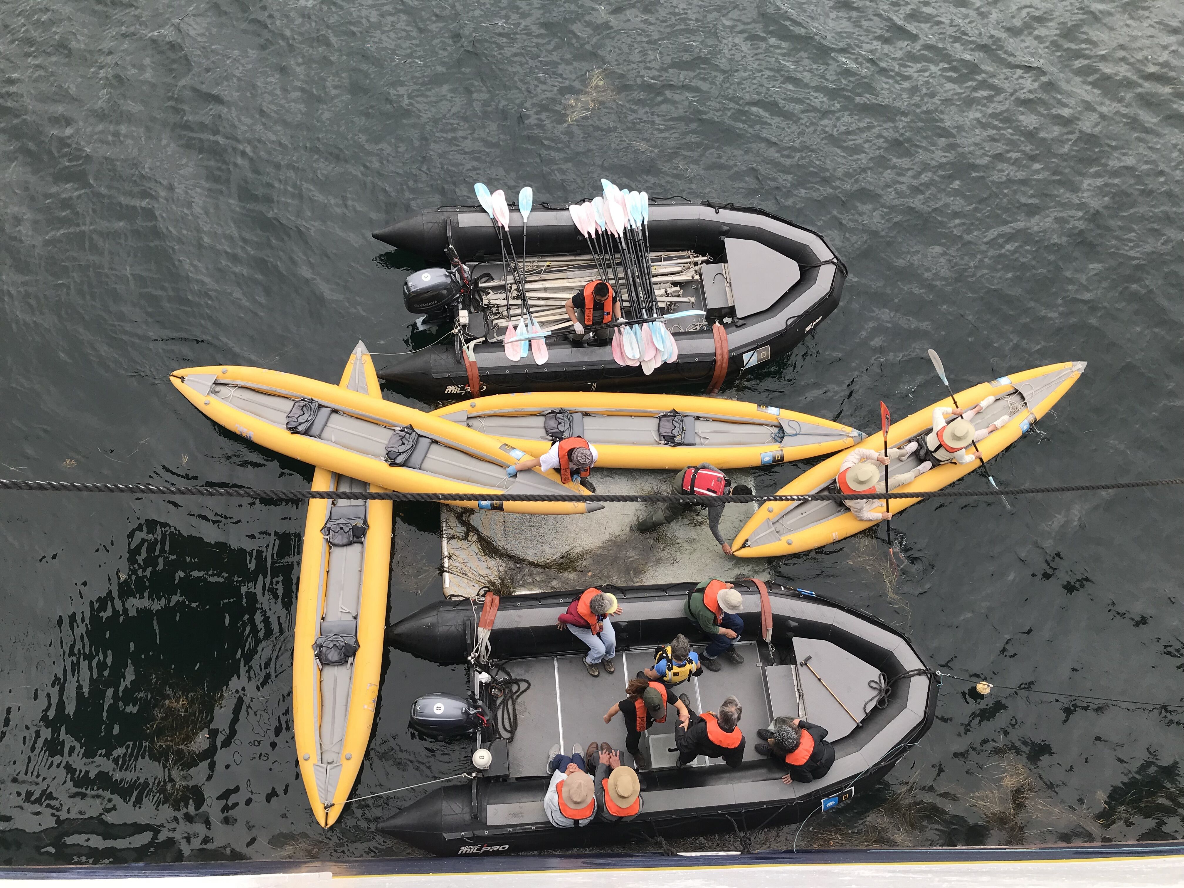 In the afternoon, we headed north and were treated to a couple of lectures onboard. First, resident botanist and glaciologist Serguei spoke to us about Arctic landscapes. After a lovely teatime, National Geographic photographer Ralph Lee Hopkins spoke on Base Camp Greenland, one of the most scenic places to adventure from in East Greenland.