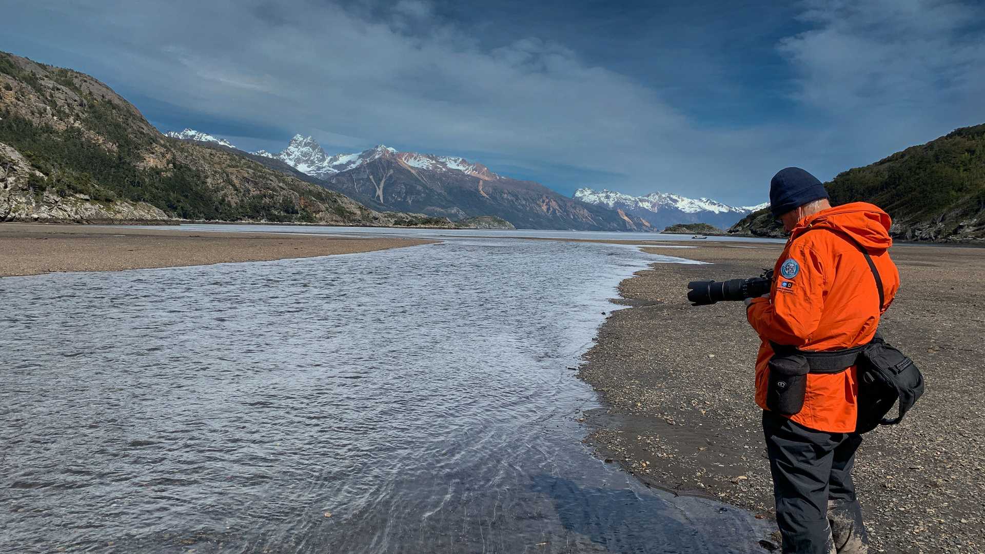 During a rare, perfectly still and windless morning, we landed at Jackson Bay, in Admiralty Sound to visit the most remote section of Karukinka Natural Park, a private protected area managed by the Wildlife Conservation Society. At 330 hectares, this area protects some of the southernmost forests, grasslands and peatlands of the planet together with a vast array of wildlife including several endemic bird species and a colony of breeding elephant seals. We hiked through large stands of primeval forest to get to a waterfall that drains the overflow of some alpine glaciers still blanketing the peaks that flank the valley we walked toward.