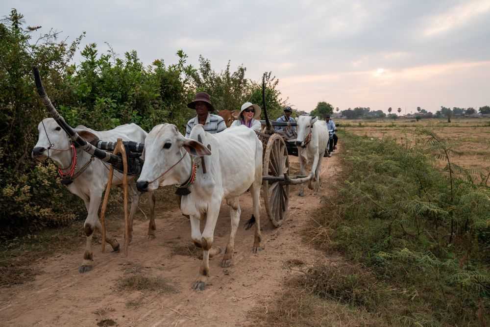 Guests awoke before sunrise to prepare for another exhilarating day in Cambodia. As the sun crested the tree line, we boarded a most unique transportation of ox-drawn carts. The journey took us through vast lotus fields, where we walked amongst the blooming landscape to learn how locals harvest, sell, and make use of these flowers. We then proceeded into town and visited a local school that is supported through contributions on the part of Lindblad and its generous guests. The school’s principal, teachers, and students greeted us enthusiastically with cheers and song. One of the main lessons taught here is English, so the guests had an were able to converse with students who showed no lack of excitement getting to engage directly with those whose language they are learning.