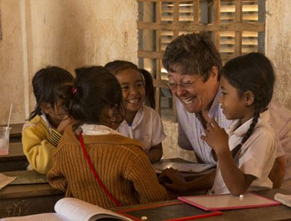 The ox carts took us next to the town of Kampong Tralach where we visited the local school. The children were very friendly and eager to practice their English with us. They sang songs for us and everyone had a lot of fun. The school library was built by donations from Lindblad Expeditions/National Geographic guests, and it was wonderful to see it well kept and filled with books. The school’s English language program and English teachers are also supported by the generosity of our guests.