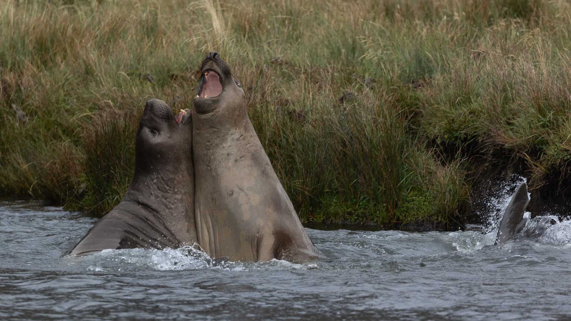 Today we had dark skies and a bit of a drizzle but no wind at all—just the right weather for our adventures in Admiralty Sound. We made a very early arrival to the head of Jackson Bay in Karukinka Natural Park, where we were surrounded by the echoing vocalizations of the elephant seals bouncing off the walls of this deep fjord. Later in the morning we visited Albatross Island, the only ‘inland’ albatross colony in the world, to check on the chicks. They’re almost ready to leave their nests; it’s been a successful season which is an incredible feat, in no small proportion due to the care and efforts of the Wildlife Conservation Society. Finally, a rainy afternoon saw as wandering through a magical forest full of birds, lichens, moss, mushrooms, and evergreen trees.