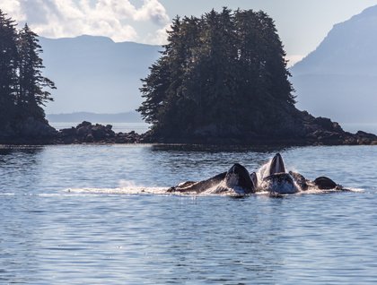 Early this morning Captain Cook eased National Geographic Sea Bird into Kelp Bay for a morning cruise. Soft light bathed the surrounding mountains and Southeast Alaska was on display in all its glory. Humpback whales were spotted plying the waters along the shore.