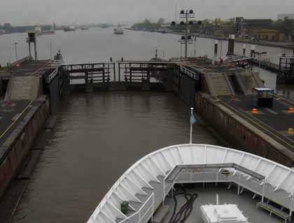 Around breakfast time we left the North Sea and entered the River Elbe. From here, we entered the canal itself, and began the transit of 61 miles. We were able to go into the smaller lock, saving quite a bit of time as there were many larger container ships and bulk carriers that were lined up to use the bigger lock. Throughout the day, we continued on, sailing under numerous large bridges and passing everything from a kayak, to a sailboat, to massive container ships.