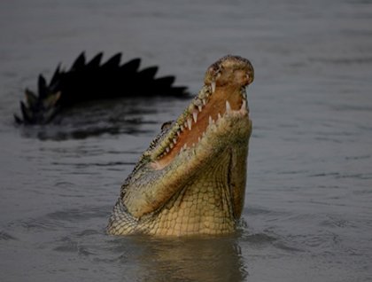 After a brief history lesson we slowly made our way up the river in search of some of its resident crocodiles. Some of us were lucky enough to spot crocodiles basking on the mud banks and slipping into the water, or Brahminy kites showing off their beautiful chestnut-colored wings against the dramatic backdrop.