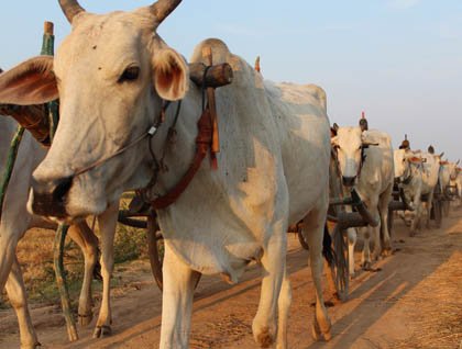 Having left the Mekong we spent the night cruising up the Tonle Sap River heading north into Kompong Chhnang province. Our day began bright and early as we tried to avoid the mid-morning heat for a unique Cambodian experience: an oxcart ride through the fields. After a light breakfast of pastries, tea and coffee, we witness another beautiful sunrise from the upper deck. Just as we are preparing to disembark we are informed that our bovine-powered transport is running late. However this is only a minor hiccup as the ability to improvise is one of Cambodia’s strengths, and the oxcarts are redirected to meet us midway along the circuit. Thus we begin the morning with a leisurely stroll.
