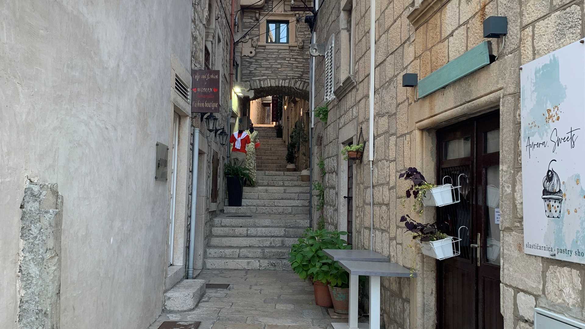 The walking tour in the afternoon took us to the historic centre of the town, where we visited the four-nave cathedral of St. Mark’s and its impressive treasury. One of the highlights was observing the oldest tradition that the devout Catholic inhabitants of Korčula have been keeping alive: a weapon dance called the Moreška. This dance dates to the Middle Ages. It was originally only performed on special occasions, but it was presented to us in an open-air space. It is an elaborate production involving two groups of dancers engaging in a mock battle over the fate of a veiled young woman with a happy ending. All dancers are amateurs and of different ages, which made us amazed at the scale of physical fitness and concentration required to perform this kind of a weapon twirl.