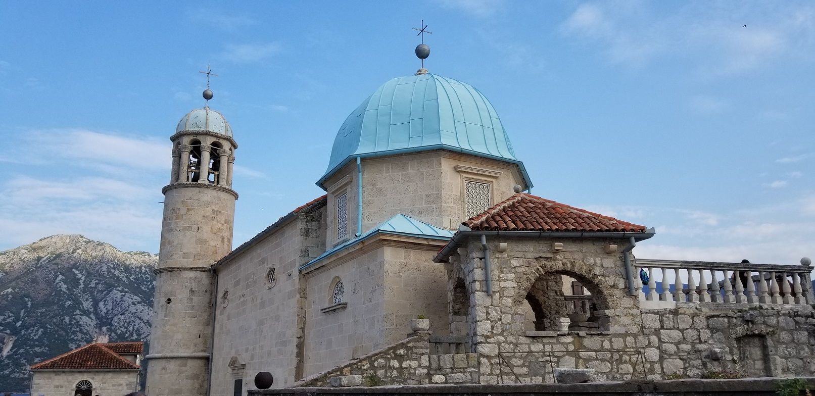 Sea Cloud arrived early in Boka Kotorska, taking on the local pilot before sunrise. As the ship passed through the picturesque, fjord-like waters, the rising sun revealed the steep surrounding mountains of Montenegro. Disembarking in the former Venetian city of Kotor, we first traveled by bus to the nearby town of Perast, where we boarded a small local tender to visit the Church of Our Lady of the Rocks. This artificial island consists of stones cast into the sea by passing sailors, marking the spot where an icon of Mary is said to have appeared. The chapel built on this island features a magnificent coffered ceiling painted by Tripo Kokolja, a seventeenth-century local artist.
