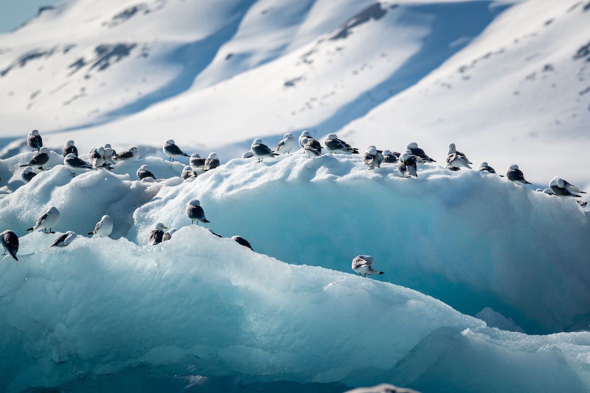 The final day of an expedition is always filled with excitement and anticipation. After an amazing journey all around Svalbard, we were eager to see what we might be able to experience today to round out such a fantastic trip. With some wonderful weather to greet us into the calm waters of the large fjord of western Spitsbergen, Bellsund, we headed out after breakfast from National Geographic Endurance . Our last outing in Svalbard certainly did not disappoint! Not everyone can say they’ve walked along the terminal moraine of a tidewater glacier. On shore, we were treated to stunning views of the large glacier, Recherchebreen, and the surrounding expanse of the fjord. As an extra treat, we took the scenic route back to the ship by way of an impromptu Zodiac cruise, visiting a small haulout of walrus and exploring the glacial lagoon, which offered the chance for a closer view of the glacier face and an appreciation of the sculptures of ice it leaves behind. In between packing and editing photos, our last afternoon onboard included presentations from undersea specialist Rory and polar bear expert Kerstin. Following Captain Aaron Wood’s farewell cocktail party and another excellent dinner by the amazing dining team, our trip would not be complete without one last interruption by wildlife. This time we sighted fin whales out along the deep-water shelf. Then we watched the voyage slideshow put together by our photo instructor, Michael, and reminisced on an incredible trip around Svalbard.