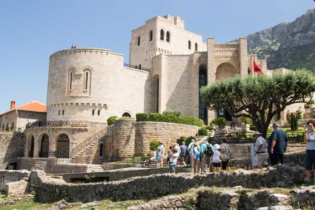 This morning we docked early in the industrial container port of Durrës, Albania, and boarded buses for our first drive through the Albanian countryside. Albania is mainly an agricultural-based economy, which was apparent as we drove through green fields which spread out as far as the eye could see, right up to the limestone mountains that we were about to drive up to get to the historic town of Krujë.
