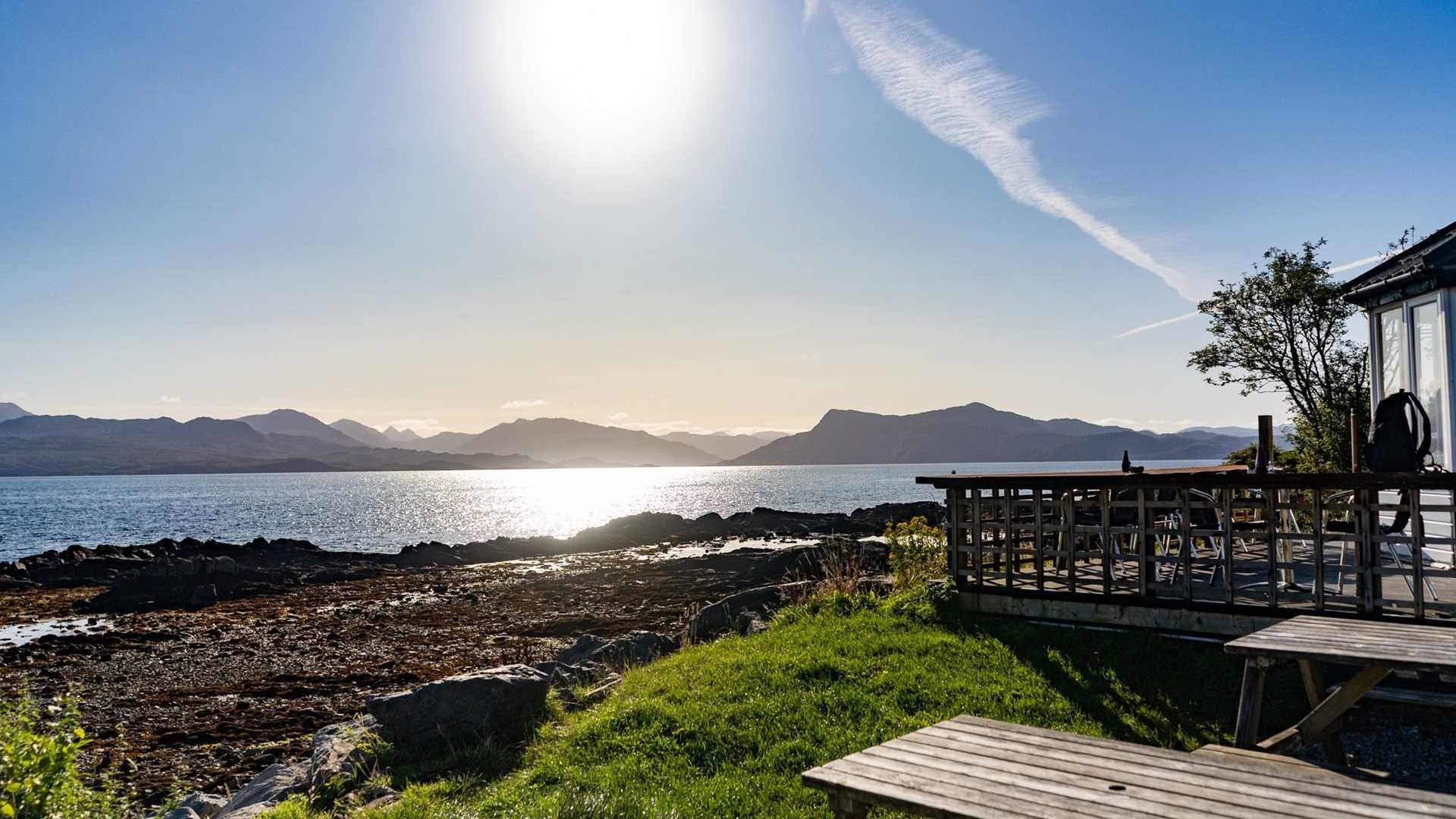Over lunch we sailed between Skye and the mainland, navigating the treacherous tidal race of the Kyle of Lochalsh, the narrowest point between Skye and the mainland where, before the Skye bridge was opened in 1992, a short ferry ride connected Skye with the mainland. In 1897 a railway was constructed from Inverness to Lochalsh—quite an engineering feat, particularly in its latter stages, when the railway had to be chiseled through hard rock to enter the town. At Kyle, we had two afternoon options for activities. One group visited the much-photographed Eilean Donan Castle, the ancestral home of the McCrae clan, that was attacked from the sea during the short-lived Jacobite rebellion of 1719. A second group hiked on the trail in the direction of Plockton for spectacular views of the Cuillin Mountains.