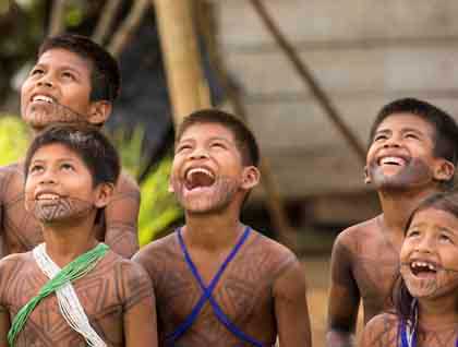 The Darien is home to the Embera people and in order to visit them we boarded several local boats and headed to La Chunga village. La Chunga is a small community of about 250 souls and numerous small kids and several adults were at the dock to greet us, all dressed with their traditional loincloths and colorful skirts. The Embera love to decorate their faces and bodies with designs painted using vegetable inks that last for four or five days and practically everyone in town was a living art gallery. They showed us many examples of their culture, including some dances and ceremonies, music, and clothing. They offered for sale many beautiful handicrafts and we all purchased amazing baskets, wooden sculptures or masks of great beauty and made with extraordinary skill. Laughter was constantly heard and it was hard to tell which group of people was more interested in the other; the kids were particularly fascinated by Kike’s drone and the expression in their faces when they first saw the thing flying up was priceless!