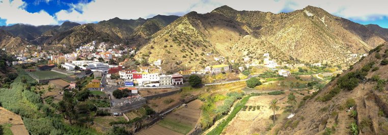 La Gomera is one of less frequently visited islands in the Canarias, having been deliberately protected from the more ruthless commercial developments associated with the monoculture of mass tourism prevalent elsewhere on the archipelago. Interestingly our guide on the day tour of the island, although he had been working as a guide for over quarter of a century, had never before worked with an American group. The island has a population of just over 20,000 and is the second smallest island in the archipelago. Of volcanic origin, it is no longer considered active and its geomorphological interest derives from a long period of erosion since that active phase, with prominently exposed volcanic plugs. Some 14 miles in diameter, the island rises to nearly 5,000 feet and our bus driver earned every euro of his gratuity negotiating hairpin bends and steep gradients throughout the day.
