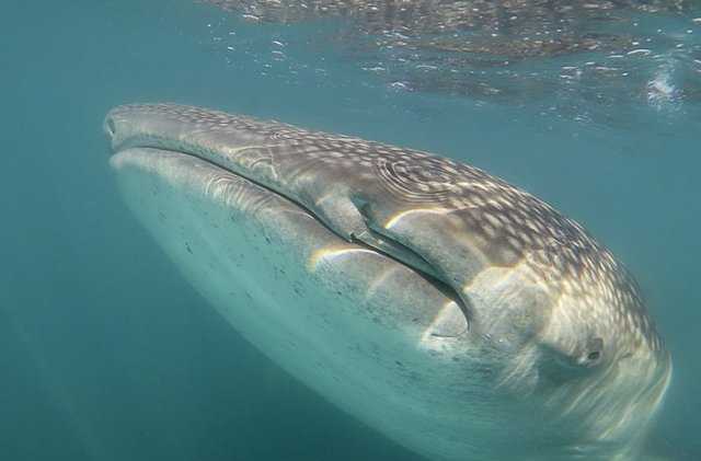 Bahia La Paz is warm and shallow, and stirred by currents generated by wind and tide. The productive water here attracts the world’s biggest fish! Using local boats, we went out to swim with whale sharks. These creatures, as sharky as any shark would want to be, are whale-like in that they attain great size by feeding low on the food chain. Their mighty maws bristle with teeth, but only tiny ones, since they feed on plankton. Look at all those boats clustered over there. Do you think that’s where the whale sharks are? Of course! And we found many to share meandering around, right below the surface. Occasionally we found them bobbing at the surface, mouths up, feeding like giant guppies in a tank. Most of us jumped in with snorkel gear to join them. Suddenly, the placidly-moving fish were found to be pretty speedy, at least to this inept swimmer. Still, we got great views of them. The sharks are medium-gray, with a gridwork of white spots. You might think it’s overly exciting to be a few feet from the world’s mightiest shark, but, in fact, it is the sense of beauty and peace you feel that is overpowering.
