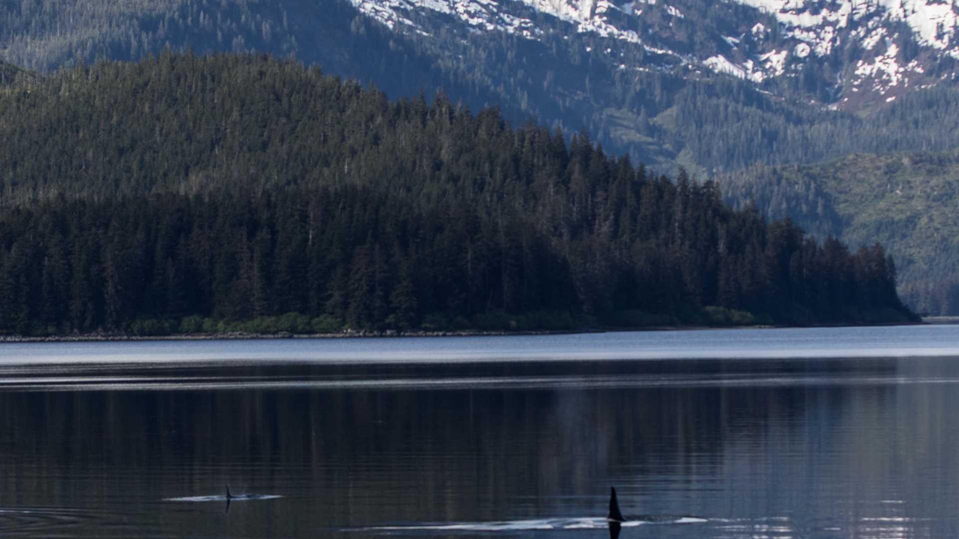 The final day of our 15 day expedition brought us many surprises and plenty of activity. All of us seasoned Alaskan travelers feel as if we have falsely represented the normally cloudy state, for once again the weather was perfect and not a cloud in the sky. At 0700 people were wearing t-shirts up on the bow. The initial morning plans were slightly delayed when naturalist David Stevens adroitly spotted a small pod of orca off of Morris Reef during breakfast. With a quick radio call to Captain Sinclair, we soon found ourselves clutched out and waited as the pod headed straight towards us. There was only one large male and what appeared to be multiple very young orca hunting beside the matriarchs of the family. The National Geographic Sea Lion was clearly no threat to these magnificent creatures for they remained in close proximity for nearly an hour. At one point four of them drifted along the entire length of the ship within a foot of the hull. All the photographers were torn between focusing on detail shots of the orca or widening their lenses and incorporating the snow covered peaks and their reflections slightly disrupted from the orcas movements.